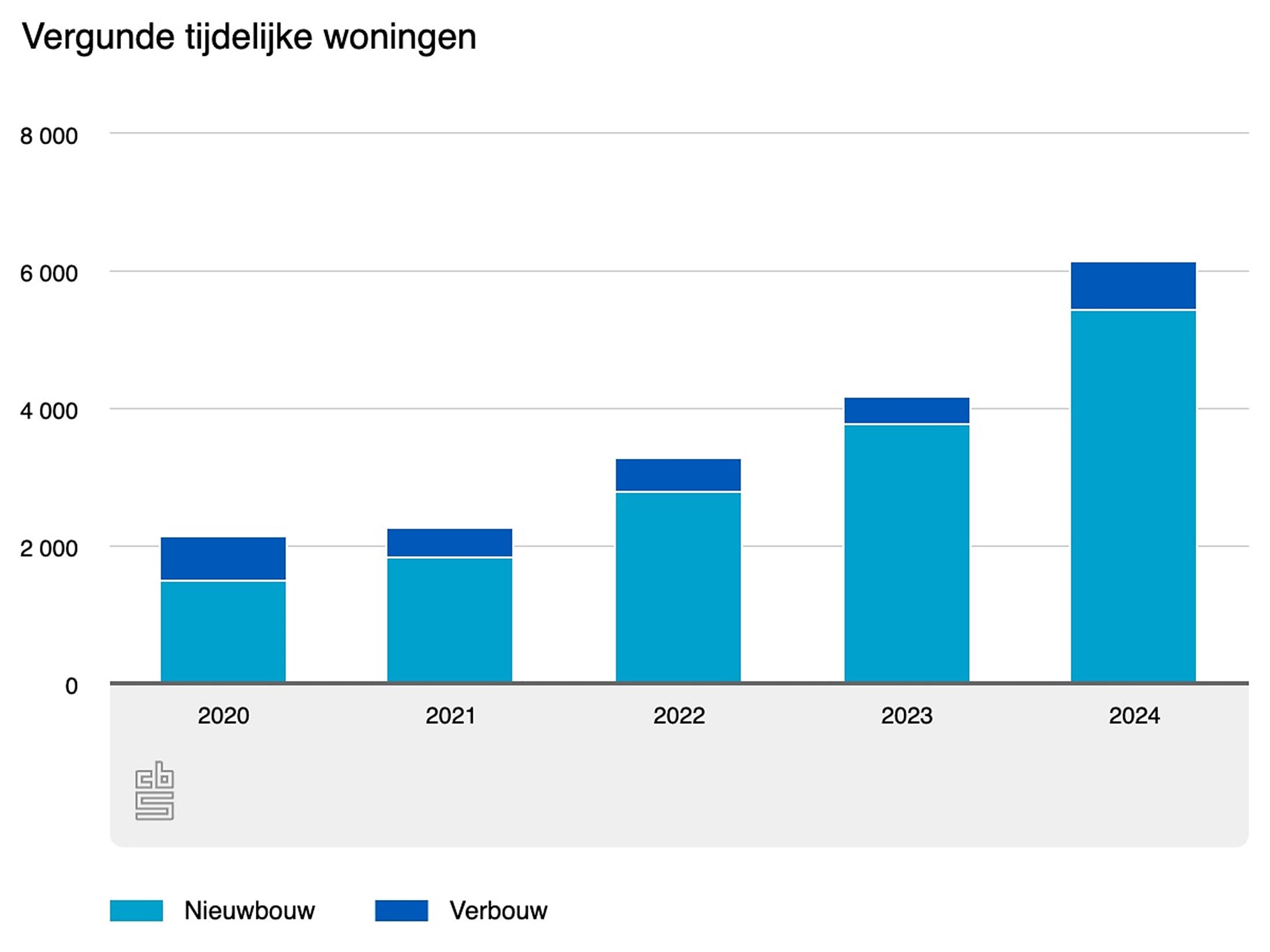 Aantal vergunningen voor tijdelijke woningen bijna verdrievoudigd