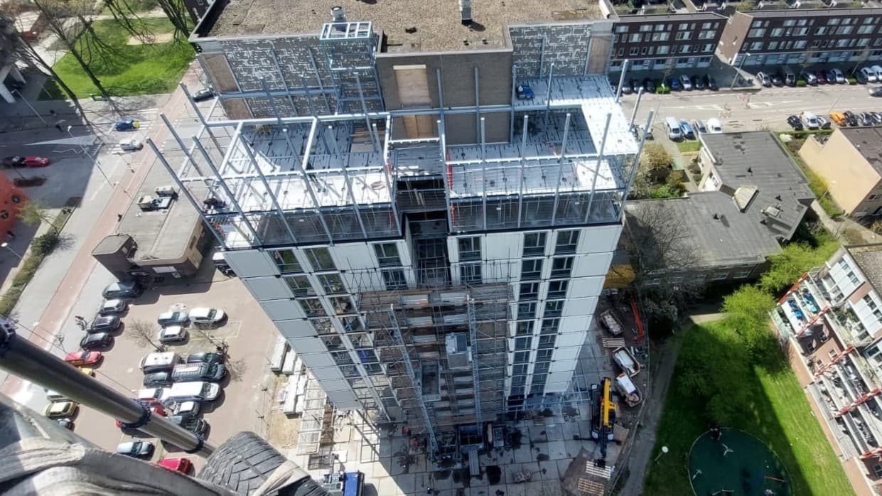 De twee- en driekamerappartementen zijn met een staalconstructie en kanaalplaatvloeren toegevoegd aan de bestaande flat. Om binnen de bouwhoogte te blijven, zijn zeer dunne vloeren van slechts 150 mm toegepast. Deze oplossing leverde het project de Nationale Staalprijs 2024 op.